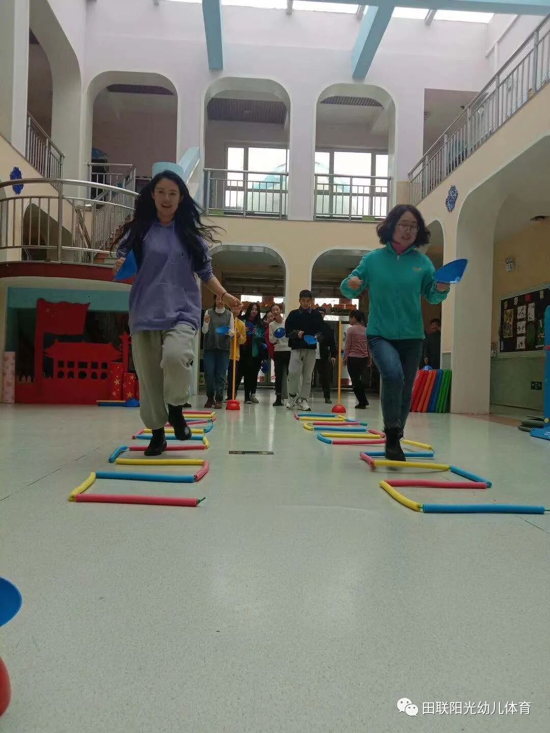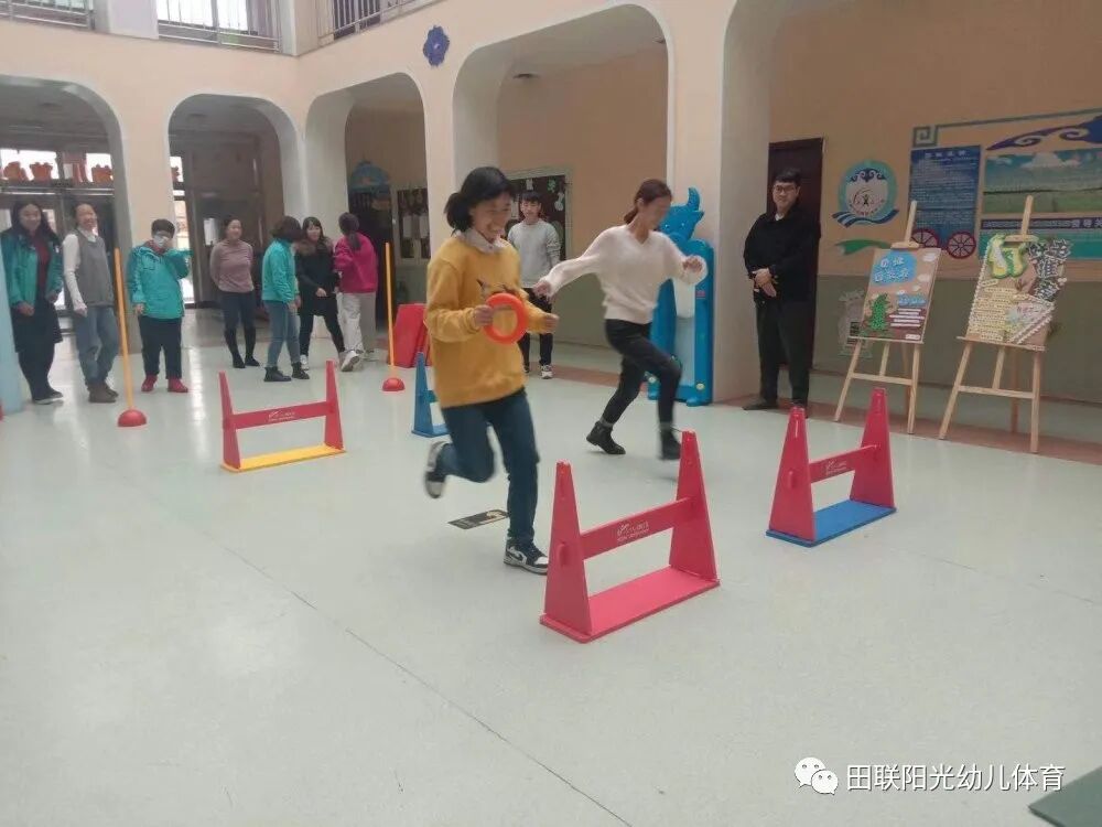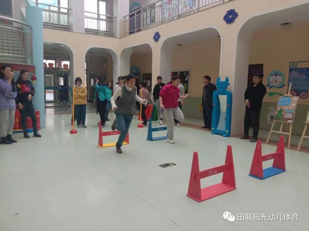速度阶梯、跑跨接力、十字跳垫、越障碍掷准等好多趣味田径的小游戏在老师们的手里玩的是不亦乐乎,相信老师们有了深刻的体验,到老师带领孩子们上课的过程更会是精彩不断...