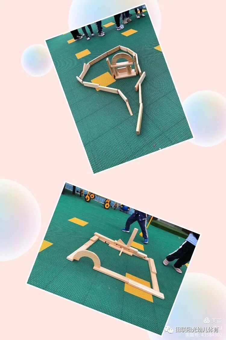小朋友们正在爬山洞,传圈圈,收青菜了。