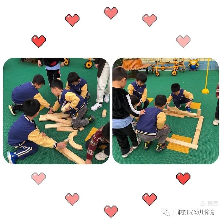 男女生分组比赛给小猪家盖房子,这一环节非常锻炼孩子们的合作意识。