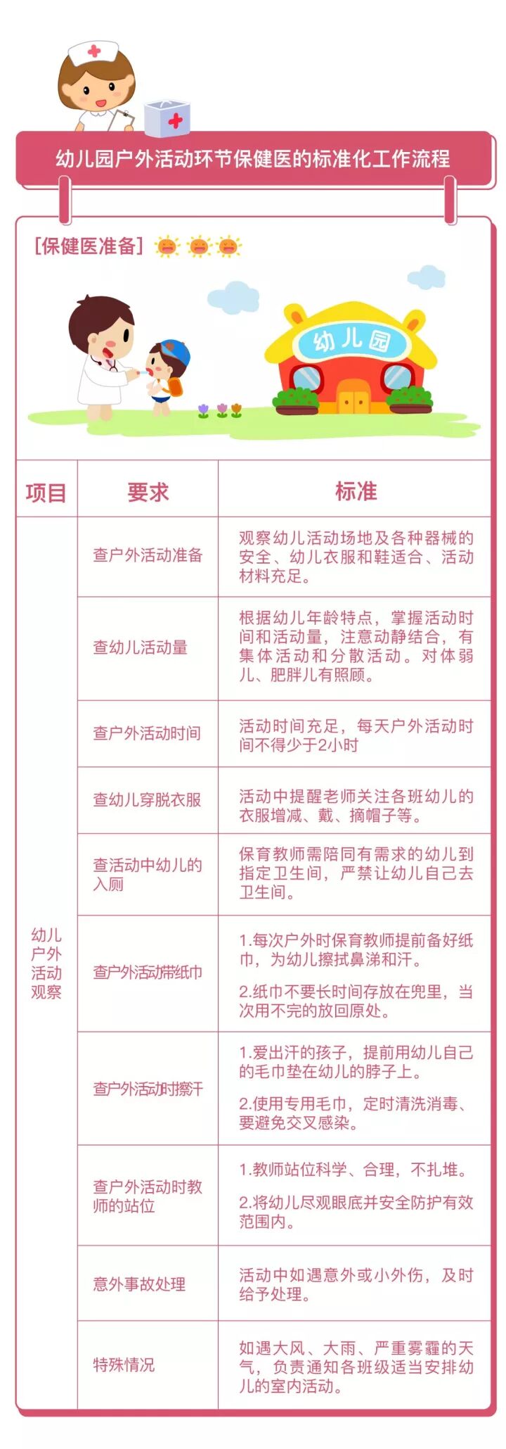 1、幼儿园户外活动环节标准化工作流程