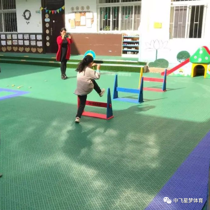 活动现场孩子们面对颜色鲜艳的田径器材,跃跃欲试,在李老师的指导下,在幼儿趣味田径的游戏中,感受运动的快乐。