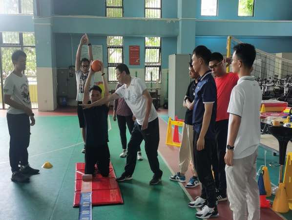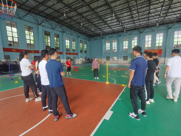 为了进一步提升参训教师在教学实践中的器材使用规范和技巧,顾大成老师将学员分小组进行器材训练和模拟教学实践,现场进行技巧讲解,从体育老师角度出发,从基础的动作技巧运用到高难度的器材运用等方面进行培训。