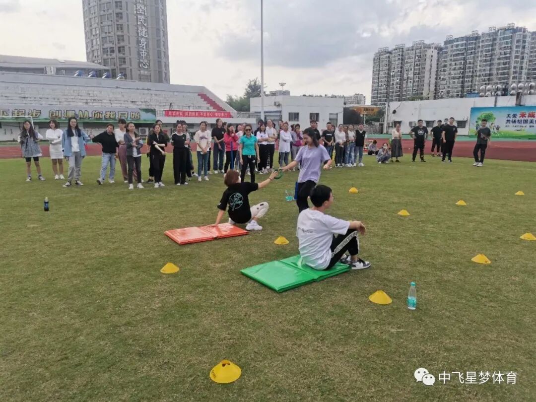 在老师们的积极参与下,短跨接力、跪投实心球、软式标枪、十字跳、弹跳鞋、一级方程式等竞赛项目依次进行;对趣味田径的运动器械的使用性能和玩法进行了全方位的感受,老师们深刻感受到了趣味项目的安全性和专业性,适合青少年田径运动开展使用。