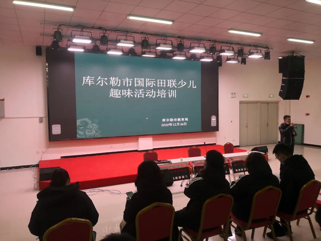 12月16日,由库尔勒市教育局主办,新疆维吾尔自治区教育装备行业协会协办,田联阳光(北京)体育发展有限公司全程提供支持和服务的库尔勒市世界田联少儿(趣味)田径指导员培训班在市第二十三中学成功举办,培训对象为各学校体育教研组长、体育教师,共100余人。